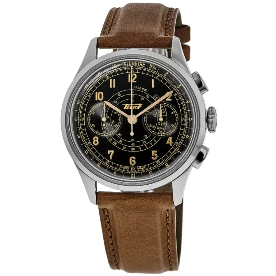 New Tissot Telemeter 1938 Black Dial Leather Men's Watch
